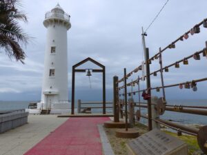 次に向かった小野浦海岸のシンボル”恋人の聖地”として人気の「野間灯台」昔青年の我