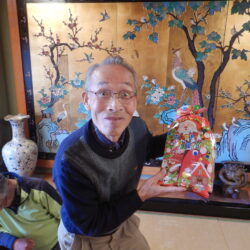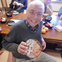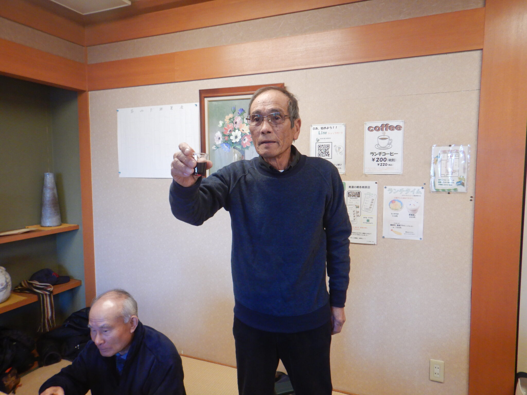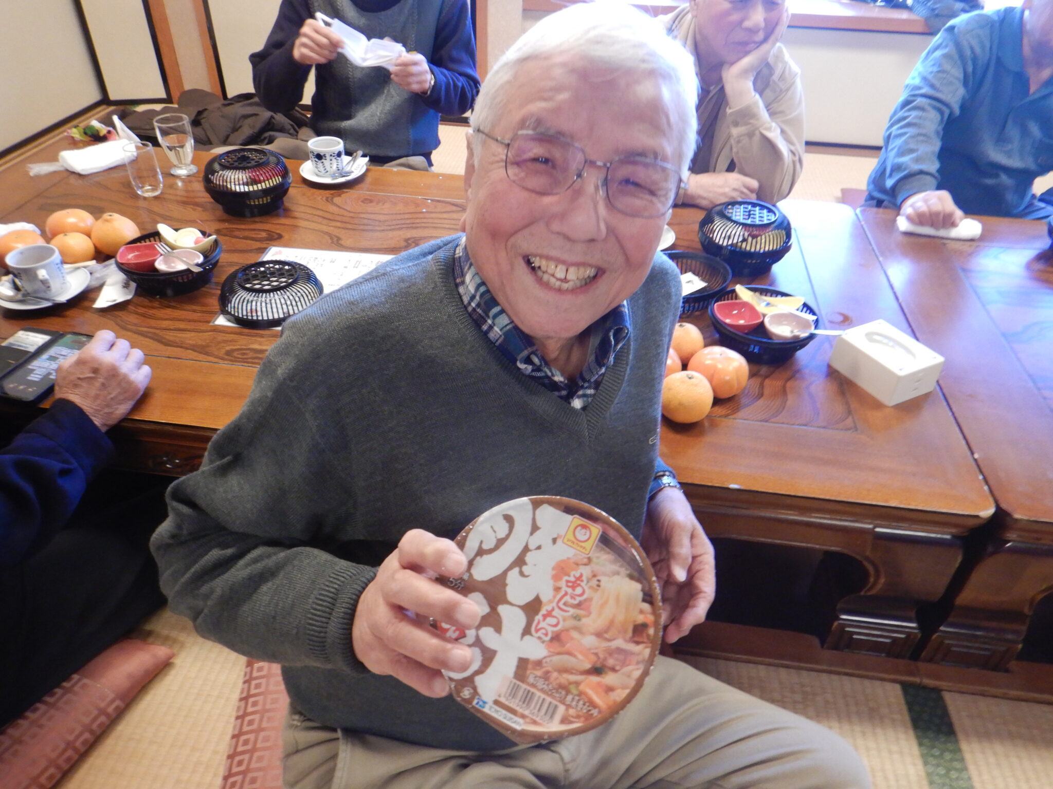 宴会場所は今年も年配者には有難い、広いスペースで掘りごたつタイプの和食のお店(美濃の郷)で実施し、15名の会員(野々部・西村・内藤・本間・矢野・水野・柴山・丸山・丸市・大森・北川・辻・子安・野田・竹山)さんにご参加頂き、懇談の中で皆さんの近況をお話したり、本間さんからの柿の差し入れや豪華景品を目指してあみだくじに挑戦したりして楽しい時間を過ごす事が出来ました。