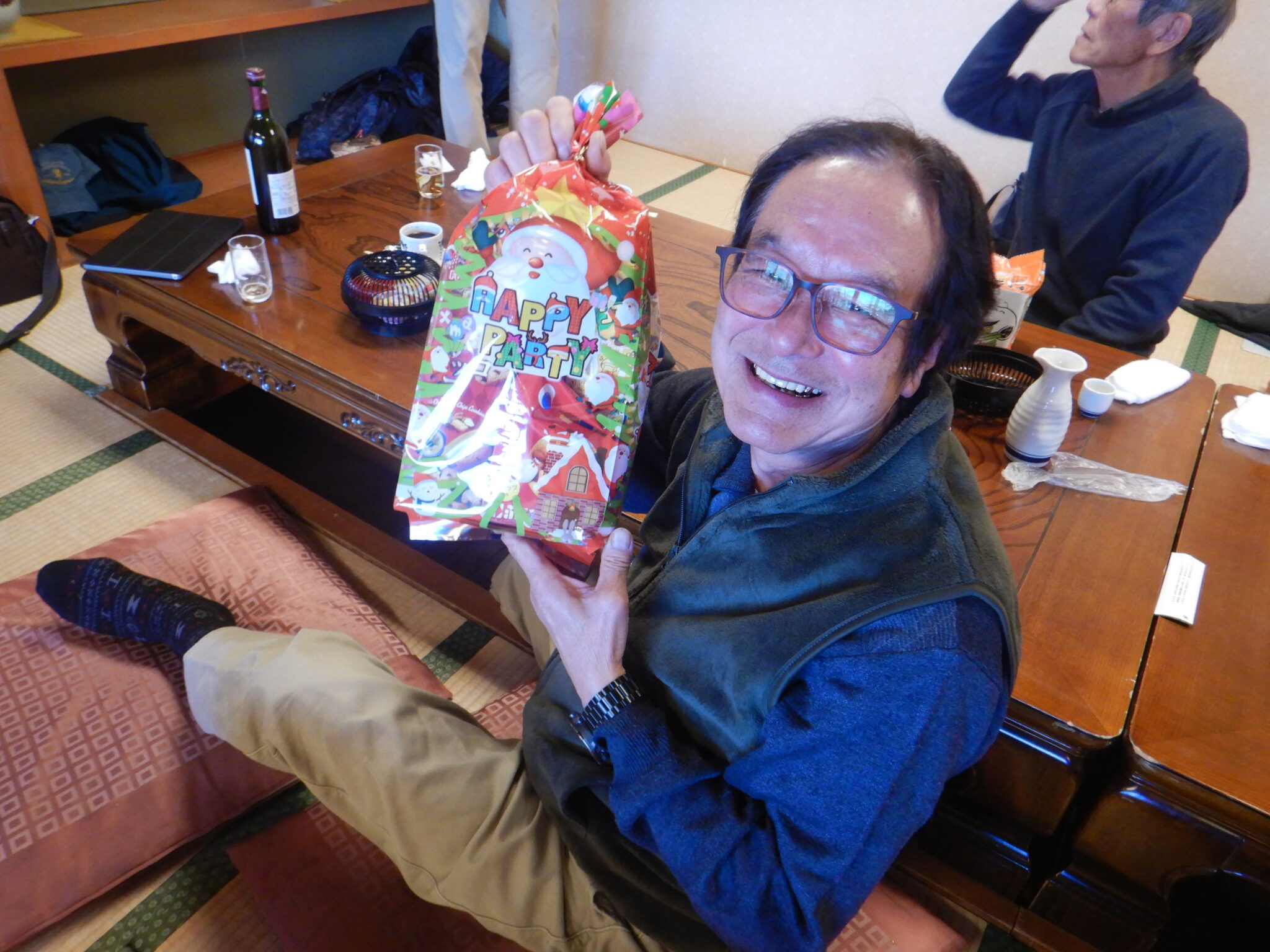 手配準備準備頂いた幹事の皆さん有り難うございました。他地区から本間さん内藤さんにも参加頂き和やかな雰囲気の中で交流懇談できました。今回はビンゴゲームではなくてあみだ籤による商品獲得レース、それぞれに一喜一憂した瞬間でした。出席できなかった方々の近況報告もあり、中身の濃い懇親会でした。年末年始、皆さん健康で元気に良い年を迎えられることをお祈りします。