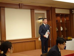 集合写真を撮影した後、《パナソニック㈱中国支店》山村支店長より『昨今のパナソニックは苦戦していますが、現場は大変頑張っています。次の100年をどうするかしっかり見据えてやっていきます』とご挨拶があり、『今からバレーボール パナソニックパンサーズの試合があるので応援に行ってきます』と出発されました。