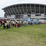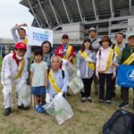今回は支部役員と有志とそのご家族12人で、新しくできたサッカースタジアム『エディオンピースウイング広島』の周辺を約一時間程度歩いてのゴミを集めでした。