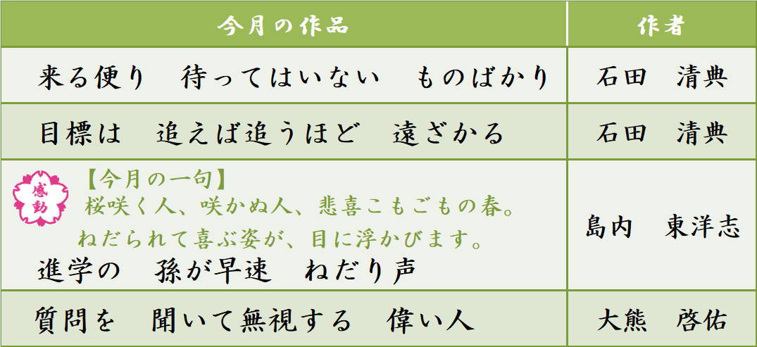 みんなで作る「俳句」と「川柳」【4月度】