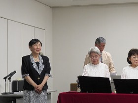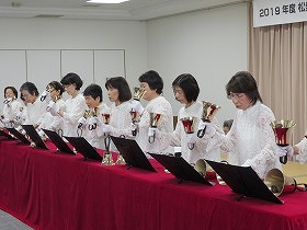 第2部の司会は11班の福原支部役員に交代し、今回は、池田市より「池田ハンドベルリンガーズ」にご出演を依頼し、素晴らしい演奏をご披露頂きました。 1991年池田市の生涯学習講座の一環として結成、以来27年間活動され、20名のメンバーは半数近くが、当初から活動されておらるとのことで、それだけに演奏もプロ並みの素晴らしいものでした。指揮者の長澤 節子様を中心に現在は池田市のNPOに加盟され、幼稚園、地区のコミュニティー、介護施設等からの演奏依頼も受けておられます。本日は長澤様以下18名の方にご参加いただきました。