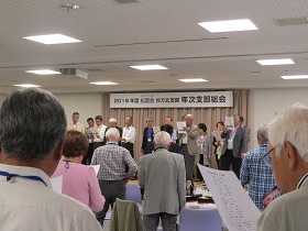 まず庄子支部長より、去る4月27日に開催された松愛会全国総会で、2018年度活動報告・2019年度の活動方針、新役員、予算が承認されたとの報告がありました。