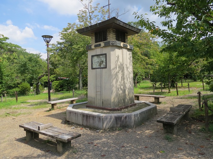 駐車場に入るとすぐに発見できましたが、説明板も無く無管理状態で、「紀元二千六百年記念」の看板が寂しく感じられました。
