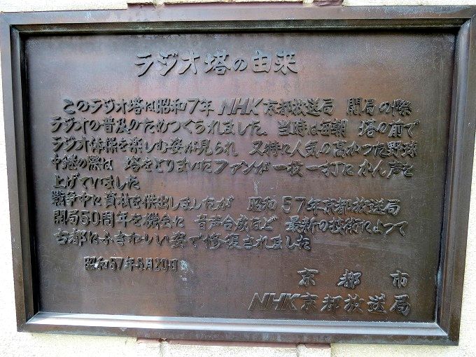 今回、寝屋川市の成田不動尊と大阪中ノ島公園、京都の円山公園内のラジオ塔を撮影(2019年8月~9月撮影)してきました。特に円山公園の塔の前後には、当時野球放送などに聞き入る群衆の姿を記録した写真パネルと、ラジオ塔の由来の説明板が設置してありました。