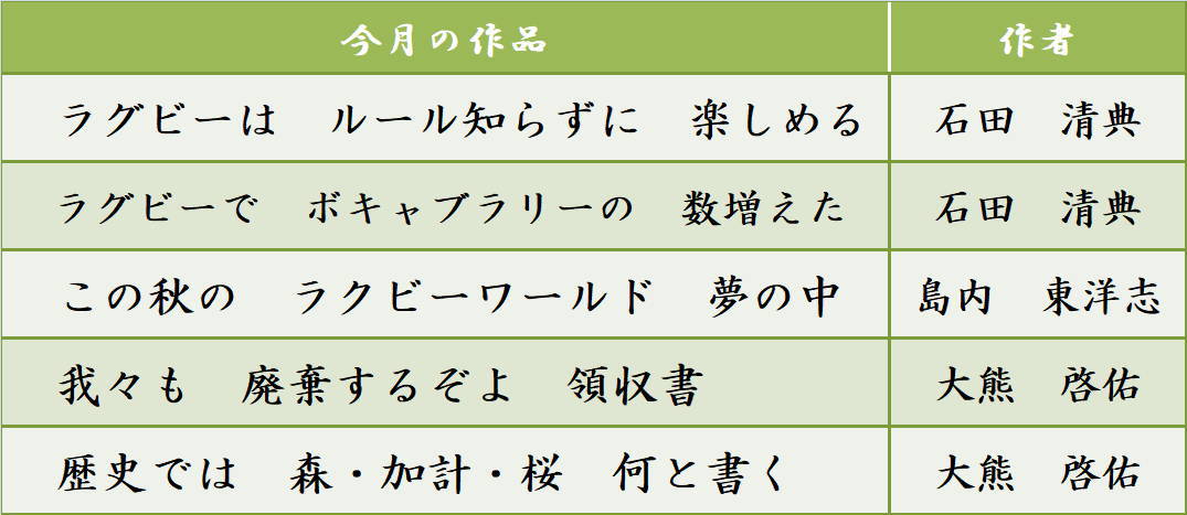 2020年1月度のテーマは、俳句、川柳ともに『オリンピック、パラリンピック』、もちろん自由なテーマも歓迎します。