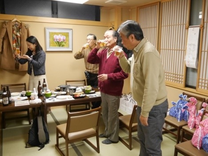 「打ち上げ会」は、年間会費の材料費の残額に追い金をし、残金処理とメンバーの親睦を兼ねて行っています。