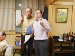 また今回も、好評の栗山さんのクイズ大会を行いますと、連絡の後、事務局の乾杯の音頭で和やかに打ち上げ会(忘年会)が始まりました。