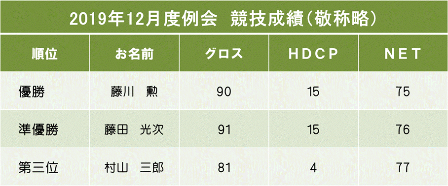 今年度最終の第117回淀川オープンがくずはゴルフリンクスで開催され、18名の方が参加されました。朝方の冷え込みはあったものの、終日晴天で12月中旬としては絶好のゴルフコンデイションとなりましたが、皆さんのスコアは意外と伸びずネットスコアがアンダーパーは皆無でした。