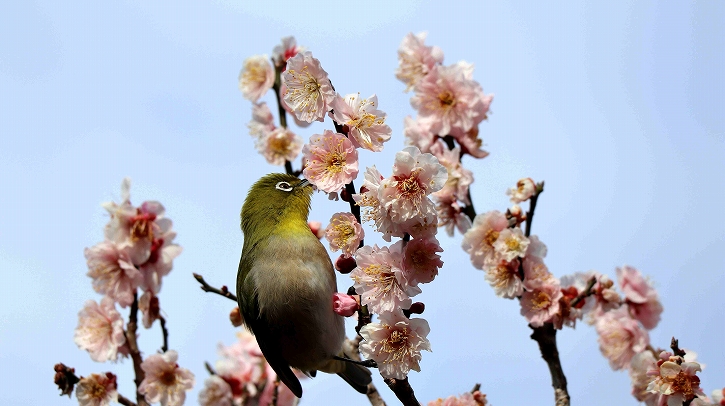 写真は枚方・山田池公園のメジロと梅の花です。桜の花も楽しみです。