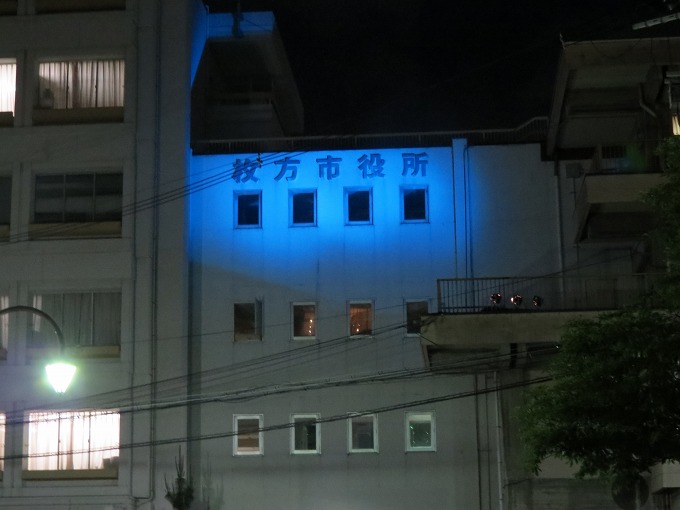 更に、市役所前の岡東中央公園にある「平和の鐘・ヒラリヨン」と、市役所の本館と別館をつなぐ渡り廊下が、毎週金曜日の午後8時にブルーにライトアップされます。