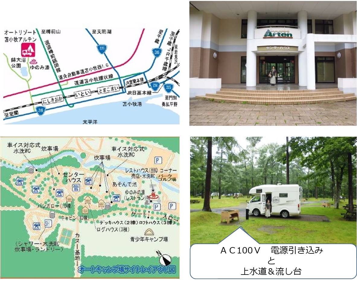 3.1日目: 夕方新千歳から苫小牧アルテンへ、車の運転に慣れる丁度良い距離でした。風呂と夕食はセンターハウスで済ませ早めに就寝、オートキャンプ場はとても空いていました。