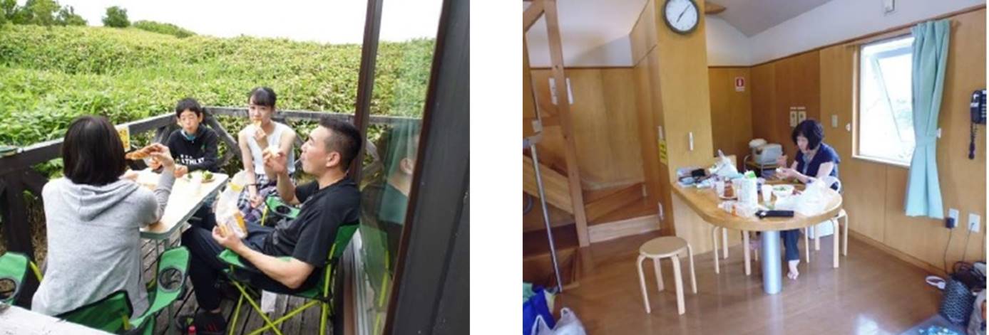 5 日目: 朝食、息子家族は草原を眺めながらベランダで、我々は台所でとりました。