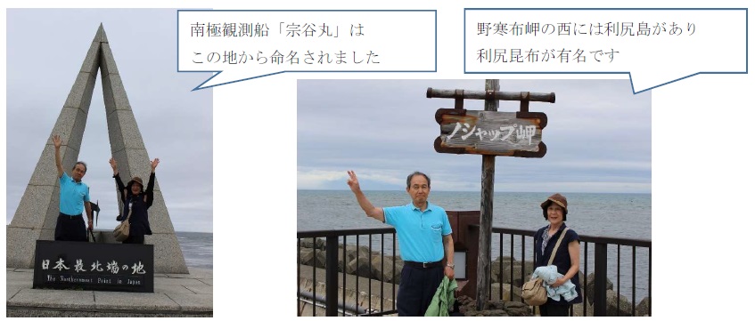 5 日目にはここを拠点に、東の宗谷岬と西のノシャップ岬(野寒布岬)両岬に行きました。尚、根室にはノサップ岬(納沙布岬)がある様です。