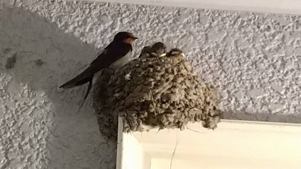 写真は、約20年振りに我が家の玄関に巣づくりしたツバメです。4羽のヒナが成長し、いつの間にか飛び立っていきました。