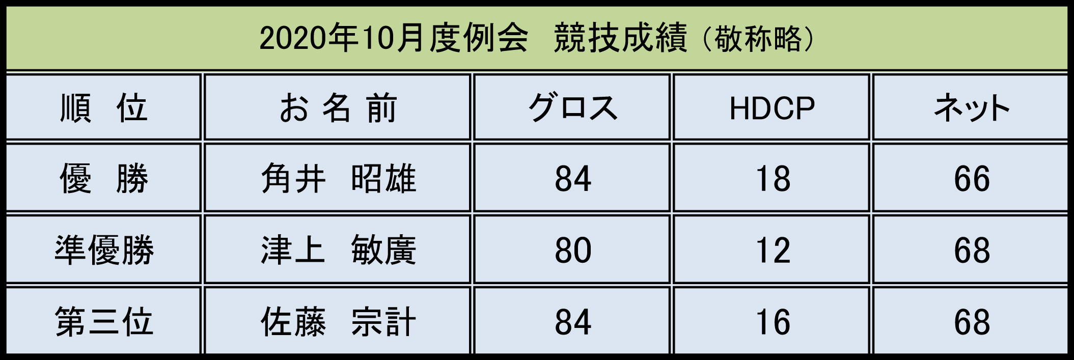 淀川オープン 2020年10月度コンペ報告