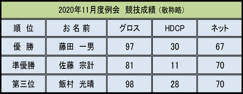 淀川オープン 2020年11月度コンペ報告