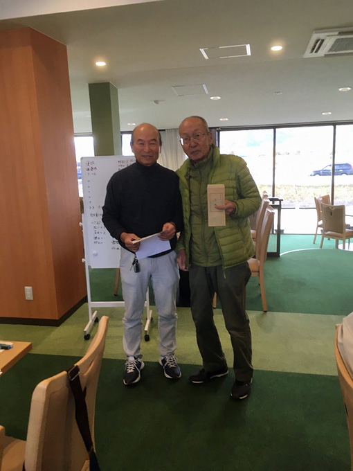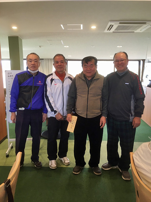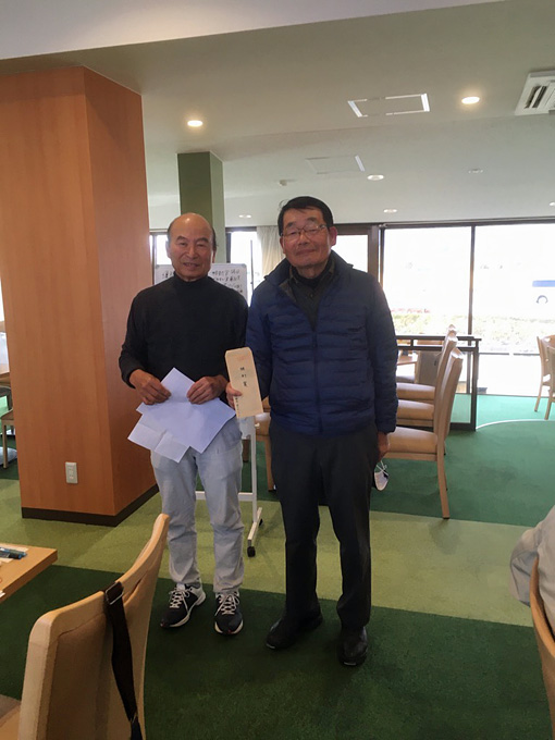 ”優勝”は、小山 吉雄さん。グロス”90”、ネット”70”のスコアで、2014年4月以来(通算2回目)の優勝を飾られました。おめでとうございます。今年度コンペの優勝者(6名中5名参加)が競う”グラマン賞”は、藤田 光次さんが見事に獲得されました。年末記念大会として団体戦も行われ、INスタート2組目の皆さん(長池、小山、瀧、佐藤)が優勝されました。その他特別賞として、BM賞(18位:鈴木 正樹さん)、ゾロ目賞(11位:鴇田 岩男さん)、大波賞(角井 昭雄さん)、小波賞(瀧 保夫さん)、水平賞(遠藤 一朗さん)が授与されました。