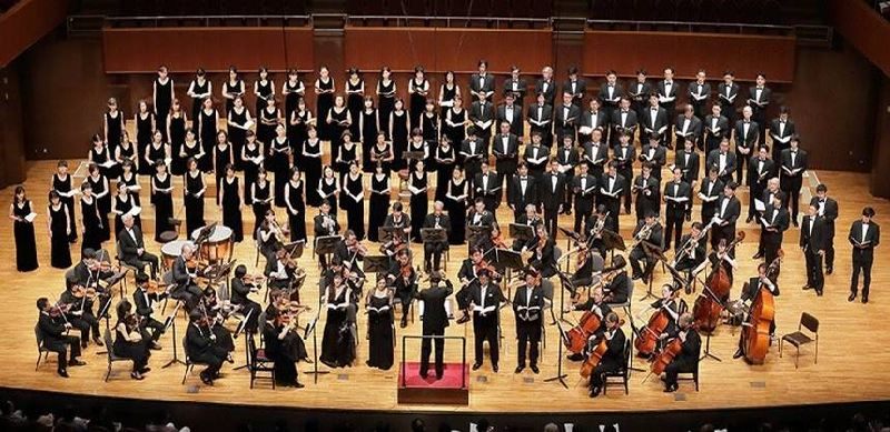 【下記写真は、パナソニック合唱団のメンバー(左)と、オーケストラとの協演(右)いずれも合唱団HPより】