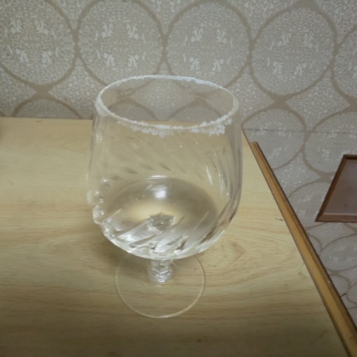 刺身醤油用の小皿に1杯のクワントローを入れます。別の小皿に食卓塩を5~6回振ります。ブランデーグラス(どんなグラスでも可)のふちをクワントローで濡らし、グラスを回しながら塩を付け、スノースタイルができたらクワントローを刺身醤油用の小皿からグラスに移します。