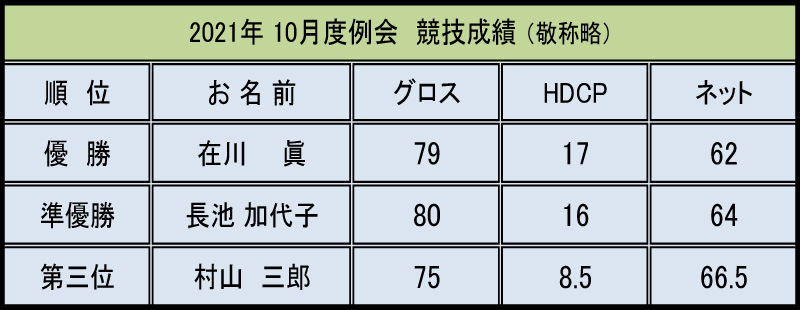 淀川オープン 2021年 10月度コンペ報告