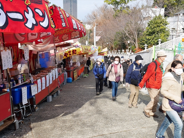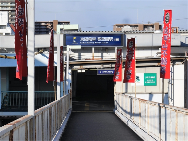 「友呂岐神社」を出発し「香里ヌヴェール学院高」の脇を通り「成田山不動尊」に向かいます。「成田不動尊」に向かう参道には、多くの「露店」が出ています。