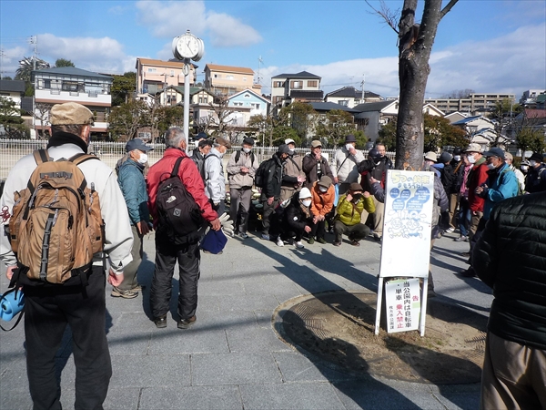9時半過ぎには、集合場所である「かほりまちテラス」横の広場には、バスや電車で多くの方が来られ、総数 62名の参加です。通常の100名超には、達しませんでしたが、予想通りの参加者数です。