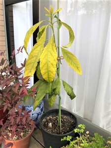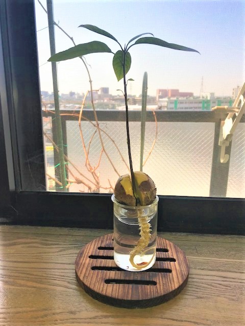 子供のころは見られなかったアボカド。森のバターともいわれ、そのまま醤油をつけて食べたり、サラダや、カリフォルニア巻など、いろいろ美味しい食べ方ができる変わった果物です。水耕栽培でも芽が出て育つらしいというので、食べた後の種を水耕栽培し、ある程度大きくなったところで鉢に植え替えベランダで育てていました。