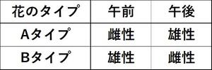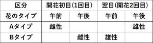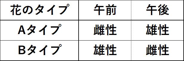 ・”A”タイプは開花1回目は午前中に雌性で開花し、翌日の午後、雄性で2回目の開花をする。