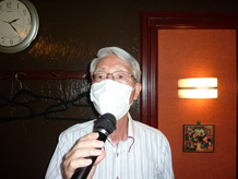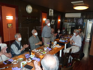 これだけの人数になりますと、従来ではA・B班に分けて実施をしておりましたが、感染状況も若干緩んできている状況を踏まえ、一堂に会しての集会とさせて頂きました。もちろん、飲食時以外には従来通り全員マスク装着です。また、今まで休会されていた方も久し振りに参加され、各自4曲ずつ歌い合ってとても賑やかな例会となりました。