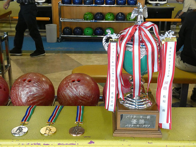 2位には、前回も2位の松井繁さんが入賞しました。ハイスコアを出し1位を追い上げましたが4ピン届きませんでした。