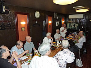 思い返しますと、2013年4月に枚方市駅前ビルの「愛音(リズム)」に於いて、第1回目の例会が開催されました。その後、2014年4月から甲斐田町の「グランパ」に移った後に、2015年2月から現在の「珈織(かおり)」に変わりました。「珈織(かおり)」では、23回目からお世話を頂き、今日の100回目まで実に8年6ヶ月に亘ってお世話になっております。我が同好会の活動の歴史は「珈織(かおり)」と共に、と云っても決して過言ではないと思います。会員一同、心より感謝を申し上げたいと思います。