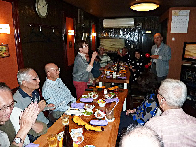 今月の特筆事項としては、我々のような歌好きの人たちにかなり影響を与えてくれたアリスの谷村新司さんが10月8日にお亡くなりになった関係で、同氏の作られた曲目を歌われる方が多く見受けられたことがあります。最後には、谷村新司さん作詩、加山雄三さん作曲の「サライ」を、皆で大きな声で合唱してお開きとしました。