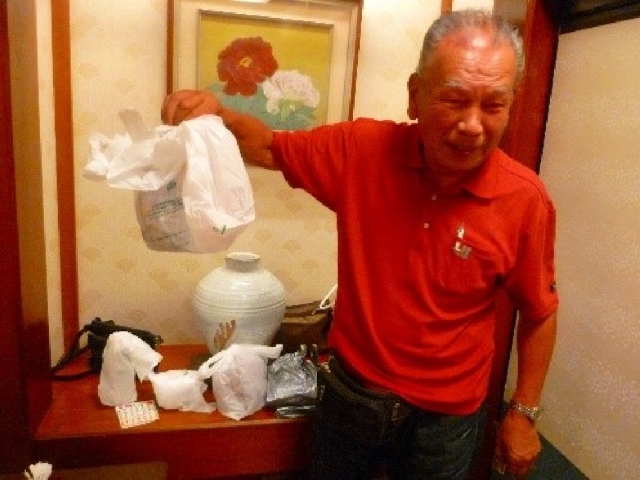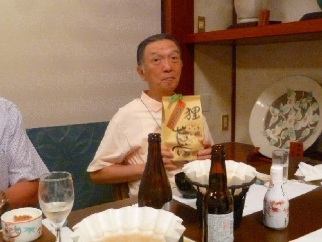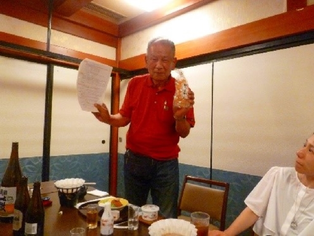 • 食事の始めに「がんこ枚方店」より頑固一徹の一升瓶の差入れがあり、各自に振る舞われました。