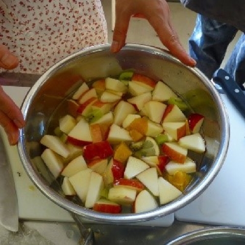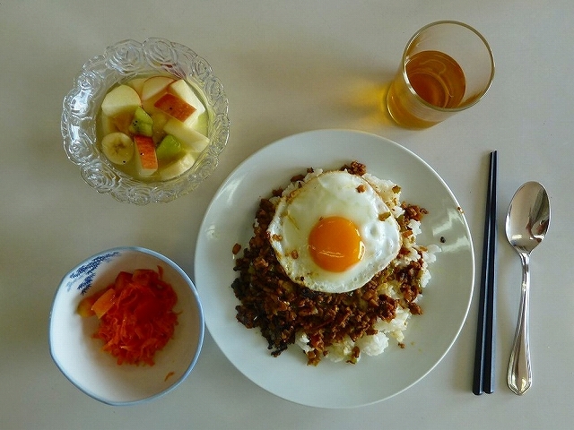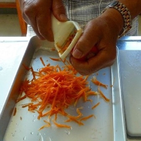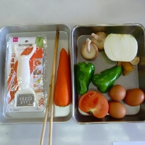 - 本日は、ドライカレーとフランスの家庭料理の人参ラぺ、とフルーツシロップを作ります。