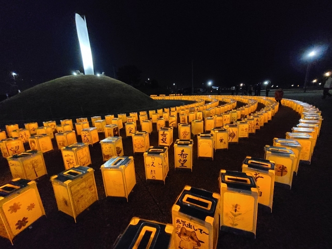 津波により甚大な被害を受けた名取市では3.11震災伝承のため絵灯篭による追悼を行います。2025年は名取市閖上(ゆりあげ)震災メモリアル公園に約1200基の絵灯篭を設置します。「亡くなった方への追悼、町の復興や人々の幸福を願う絵や文字」をベースとし、「忘れない、そして 、伝える 」が恒久のテーマです。