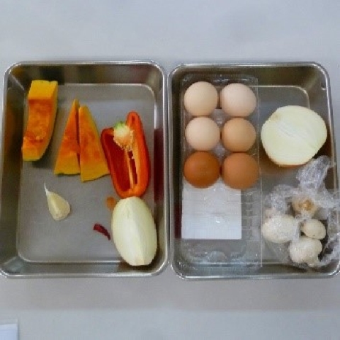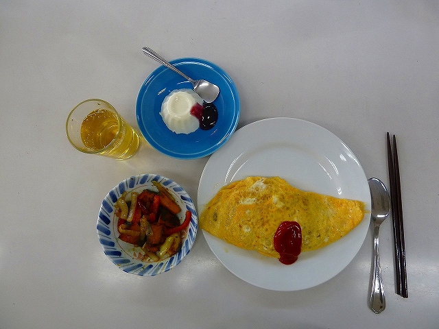 - 本日の料理は、オムライス、温野菜サラダ(マリネ)、ブラマンジェを作ります。