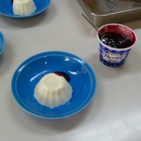 - 本日のブラマンジェのフルーツソースは、ブルーベリージャムを使います。
