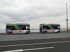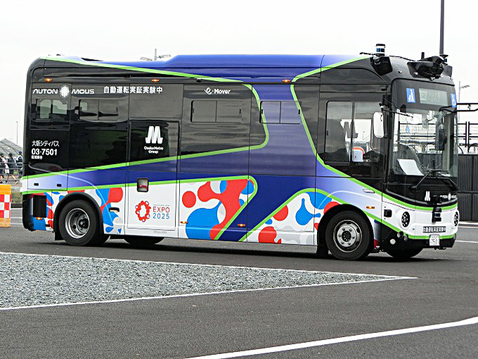 まずは「空飛ぶクルマ」を見るため西ゲート近くの「フューチャーライフゾーン」へ向かいました。ただ東ゲートから西ゲートまでは結構距離があるので、万博会場内を走行する外周バス「eMover」を利用しました。このバス、地面に埋め込まれた送電コイルの上を走行することでバッテリーに給電する方式のEVバスとのことで、レベル4の自動運転車もあります。1回乗車と、1日乗り放題の2種の乗車券がありますが、私は1日乗り放題の方を選択しました。