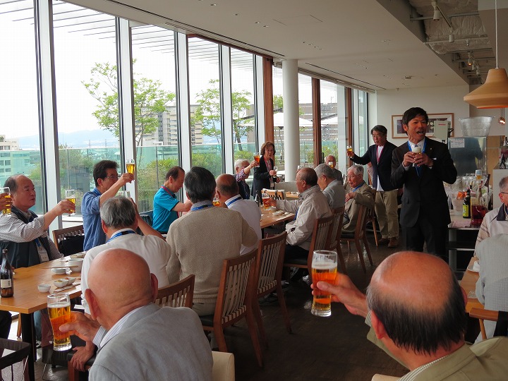 第3部は前述のように、会場を「ひらかたT-SITE」のレストラン【食のつむぎ】に移動し、本日来賓でおいで頂いた番匠市会議員の挨拶と、乾杯の音頭で、賑やかに懇親会が始まりました。