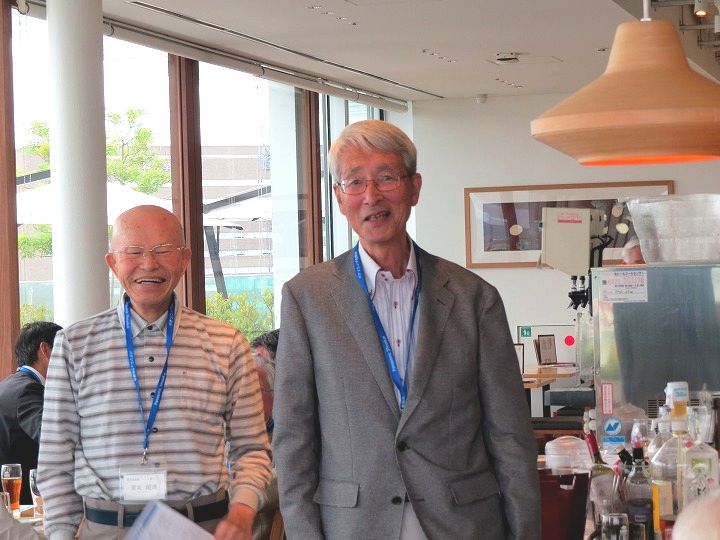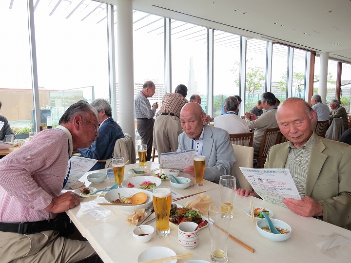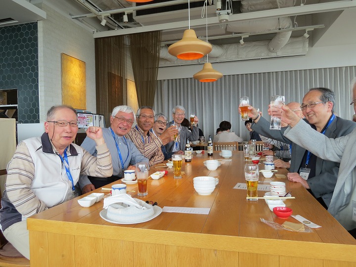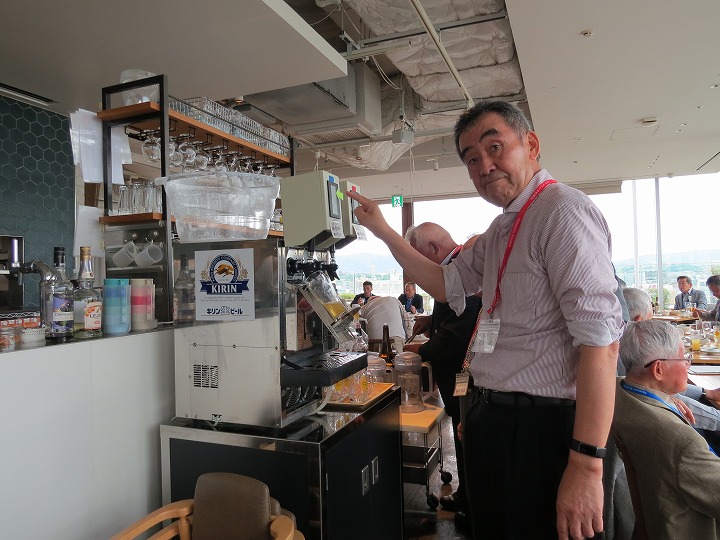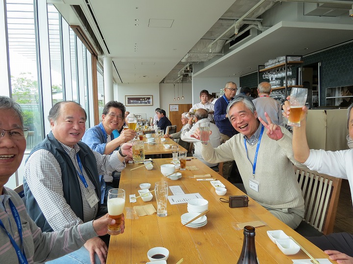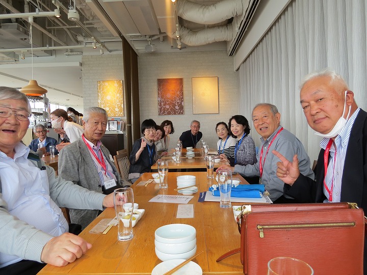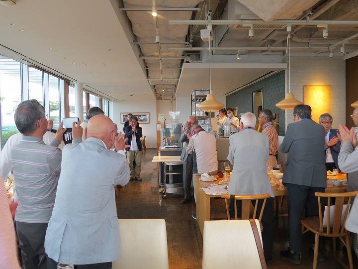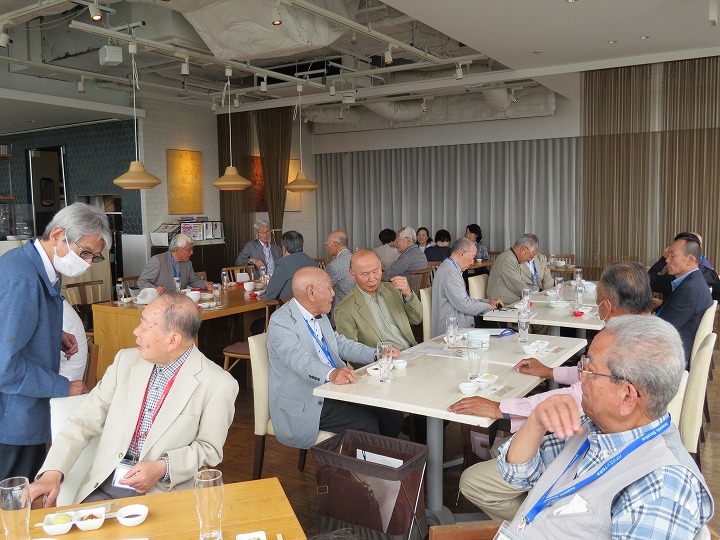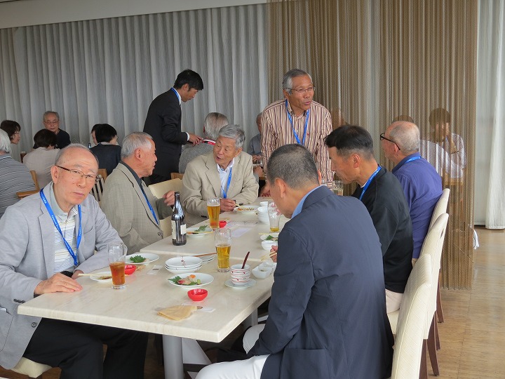 久々の再会の喜びからか、乾杯直後からすぐに他のテーブルを回り始める方も見受けられ、時間の経過とともにますます盛り上がってきました。今回はドリンクはセルフのため、サーバーで満杯になって吹き出し大慌てするなど、楽しく笑顔の懇親で時間は「あっ!!」という間に経過し、終盤には「料理教室」や「カラオケ同好会」からの入会呼びかけもありました。最後に寺村副支部長の一本締めをもってお開きとなり、全員おみやげを頂き家路につきました。