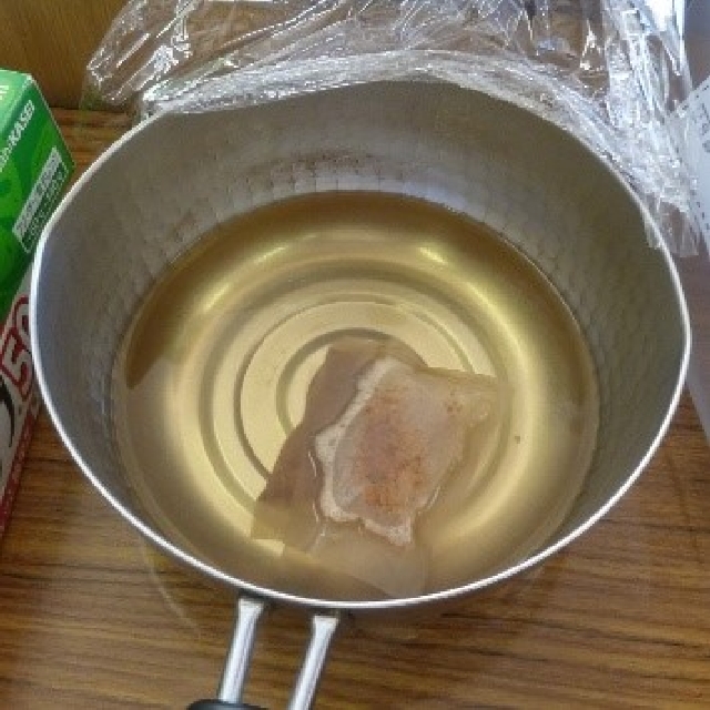 - 市販の顆粒だしで、出汁をつくる。(しいたけや鶏が入るので、顆粒だしで良い)