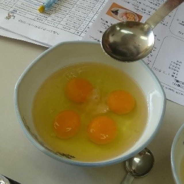 - だて巻きは、甘いのが「いや」と言う人がいるため本日は、基本の味で作りますので、各自でアレンジして下さい。