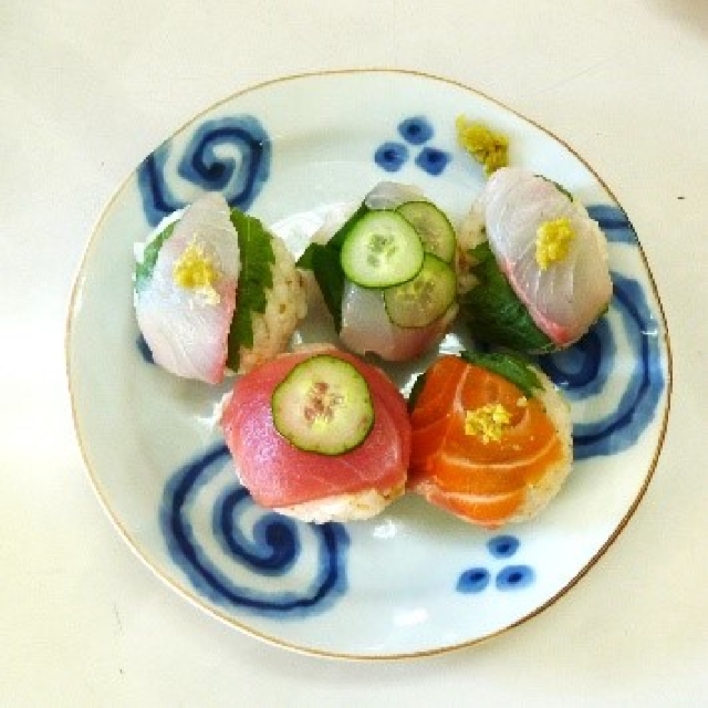 ぬれ布巾(水を含ませたキッチンペーパー)をかけて、人肌にさます。 - すし飯を約16個に丸める。