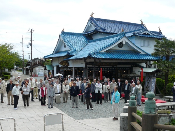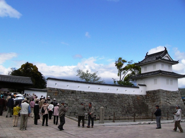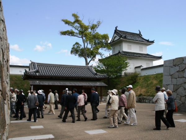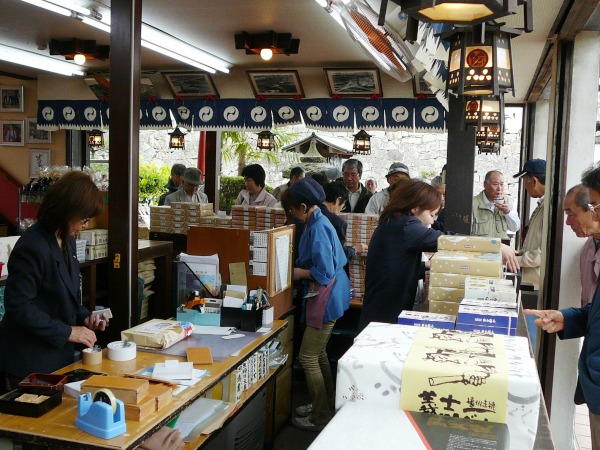 赤穂城は5万石の浅野氏には過度に広壮で、これがために財政難に陥り、天守の造営も計画されていたが幕府への遠慮か財政難のためか造営されず、天守台のみが今日残っているということである。城址前の老舗饅頭屋「巴屋」で、塩味饅頭や赤穂塩等の名産を買い求める方も多く、バスの網棚には早くもみやげ物が並び始めた。