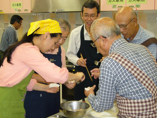 松愛会枚方南支部では、5年連続で料理教室に参加させていただいています。家族4人のうち私を除く3人は女ばかりですので、家で料理したことは有りませんが、加藤恵実先生のにこやかなご指導とおいしい料理が忘れられず、毎年参加させていただいています。