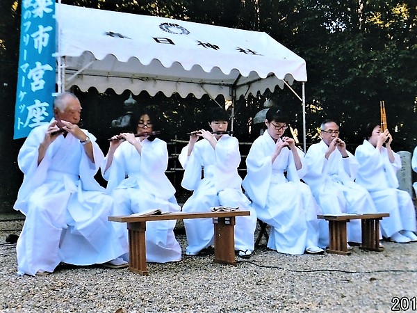 など全て10年近く続けています。詩吟や龍笛はやり始めはなかなか難しかったですが、継続することで段々とものになってきました。継続は力です。 - 特に、茄子作春日神社の例祭での演奏を目的とされて結成された「春日神社雅楽会」で現在、会長としてメンバーをまとめて、関西雅楽会の宮原幸夫先生の指導を受けて日々練習を積み、例祭、杜のコンサートなどで演奏活動を8年間続けています。