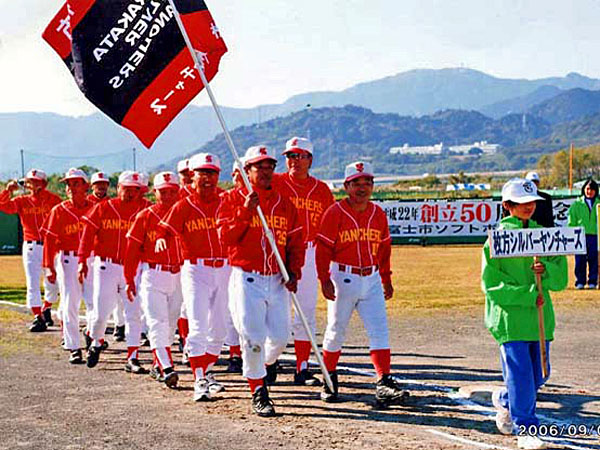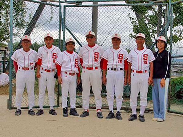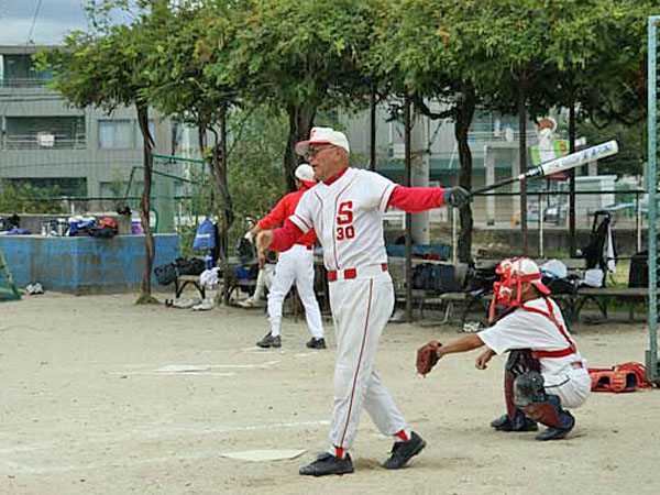 定年退職後、学校用務員を中心に組織されていた枚方ソフトボール協会所属のソフトボールチーム「シルバーヤンチャーズ」に入団、サードから始め、2005年から監督を13年間担当、現在は球団代表を勤めています。当チームは大阪ではかなり有名で、シニアの部(60歳以上)、ハイシニアの部(65歳以上)の春秋の大会で常に好成績をあげています。松下OBも数名おられます。