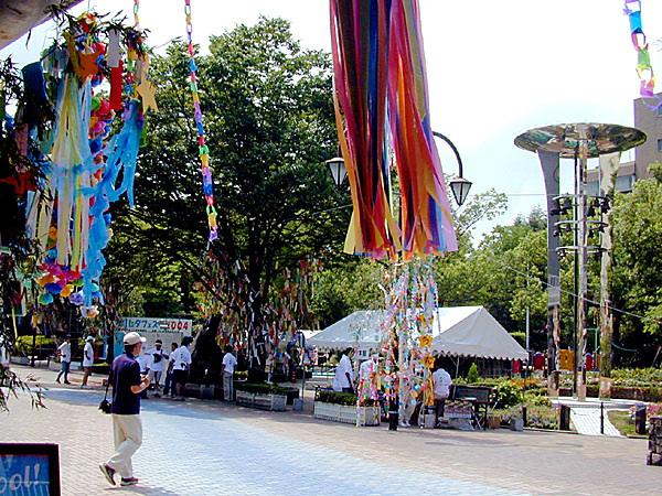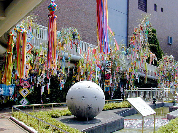 - 市民会館前広場には緑立つ道(浪速国道事務所)のたなばた広場が開設